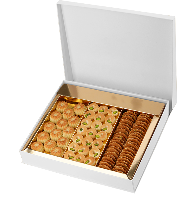 Steigern Sie das Ansehen Ihrer Marke, indem Sie unseren erlesenen Baklava-Mix in allen Varianten sowie feine orientalische Gebäcke wie Maamoul, Barazek und Ghraybeh unter Ihrem eigenen Label anbieten.