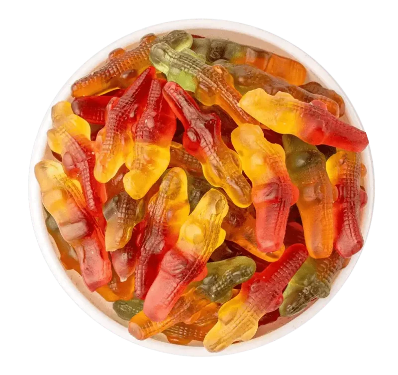 Krokodil-Fruchtgummi – Fruchtmix – extralange, weiche Fruchtgummis in Krokodilform. Mit verschiedenen Fruchtaromen und halal-Zertifizierung sind sie ein echter Naschspaß für Groß und Klein.